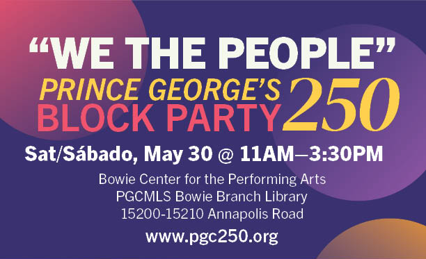 PGC250 is hosting a We The People block party on Saturday, May 30th to commemorate Prince George’s County’s history, arts, culture and more. And we need you and your organization! We hope you will be able to provide engaging activities for community members to commemorate and observe the United States’ Semiquincentennial. Prince George’s County’s history is American history.